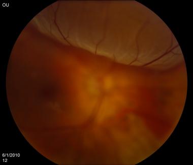 CRV occlusion : lots of flame shaped retinal hemorrhages, cotton wool spots